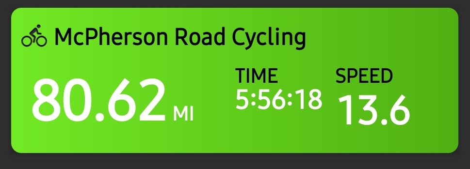Yesterday’s ride from Great Bend, KS, to McPherson, KS, was challenging because of the strong crosswind we dealt with the entire ride. Then, as we overnighted in McPherson, we could hear the wind howling all night long, and the forecast was more of the same for today. So this morning I got all prepped and was heading down with my bags a little before 7 this morning, when I learned that the tour company had decided on a 10:30 start instead of the usual 7/7:30 starts. The forecast indicated the wind was supposed to subsite as the day unfolded, so we had a later start than anticipated.